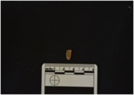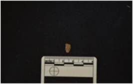 | Description / विवरण | Chalcedony heated blade fragment has two ridges on dorsal side, striking platform, bulb on ventral side broken from distal end, use-wear marks on cutting edges and trapezoidal cross-section. |