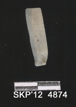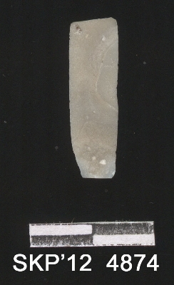 | Description / विवरण | This is chert blade, with one end broken and triangular cross section bulb of percussion at the other ends. Flaked ridges on the dorsal side. |
