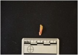 | Description / विवरण | Chalcedony blade has a ridge on dorsal side, striking platform, bulb on ventral side, use-wear marks on cutting edges, partly broken from distal end and heated. |