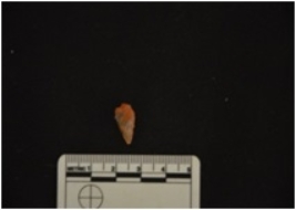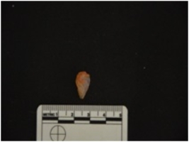 | Description / विवरण | Chalcedony heated point has crested guided ridge on dorsal side, striking point platform, triangular cross-section and use-wear marks on cutting edges. |