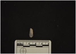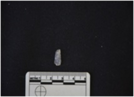 | Description / विवरण | Chalcedony blade has a crested guided ridge on dorsal side, striking platform, bulb on ventral side, use-wear marks on cutting edges and triangular cross-section. |