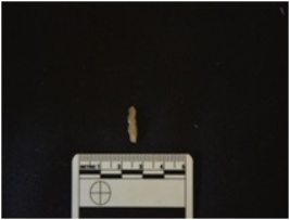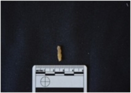 | Description / विवरण | Chalcedony blade has a crested guided ridge on dorsal side, striking platform, bulb on ventral side, use-wear marks on cutting edges and triangular cross-section. |