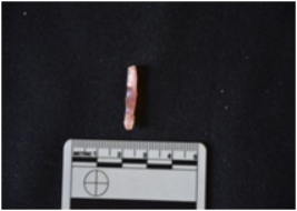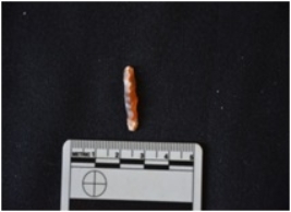 | Description / विवरण | Chalcedony heated blade has a crested guided ridge on dorsal side, striking platform, use-wear marks on cutting edges and triangular cross-section. |