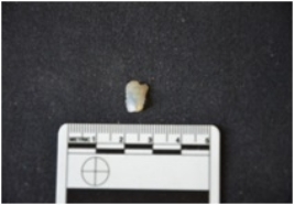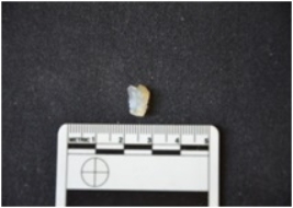 | Description / विवरण | Chalcedony utilized flake has flake scars on dorsal side, striking platform, bulb on ventral side, striking platform, bulb on ventral side and use-wear marks on working edge. |