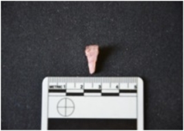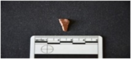 | Description / विवरण | Fragment of chert blade has a midridge on dorsal side, broken from proximal end, use-wear marks on cutting edge and triangular cross-section. |