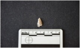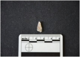 | Description / विवरण | Fragment of chalcedony blade has two ridges on dorsal side, broken from both ends and use-wear marks on cutting edge. |