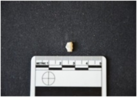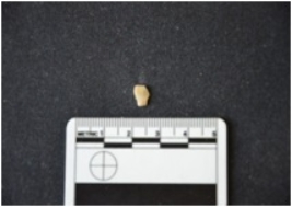 | Description / विवरण | Fragment of chalcedony backed blade broken from both ends, backing along at one edge, use-wear marks on other edge and triangular cross-section. |