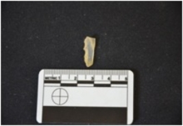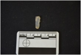 | Description / विवरण | Fragment of chalcedony blade has two ridges on dorsal side, striking platform, bulb on ventral side, broken from distal end and use-wear marks on working edge. |
