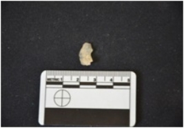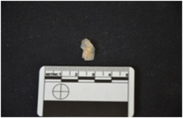 | Description / विवरण | Chalcedony blade has a wavy ridge on dorsal side, striking platform, chipped off bulb on ventral side, broken from distal end, triangular cross-section and triangular cross-section. |