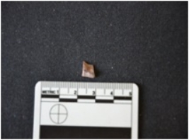 | Description / विवरण | Fragment of chert blade has two ridges on dorsal side, broken from both ends, use-wear marks on edges and trapezoidal cross-section. |