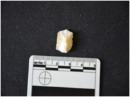 | Description / विवरण | Agate utilized flake has flake scars on dorsal side, striking platform, bulb on ventral side and use-wear marks on working edge. |