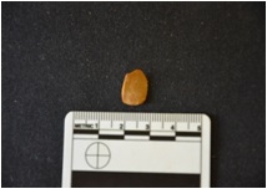| Description / विवरण | Chert utilized flake has striking platform bulb on ventral side and use-wear marks on working edge. |