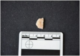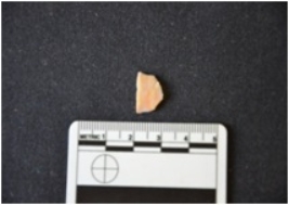 | Description / विवरण | Chalcedony utilized flake has flake scars and use-wear marks on working edge. |