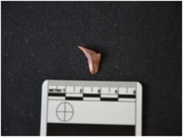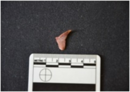 | Description / विवरण | Chert utilized flake has ridges on dorsal side, striking platform, diffused bulb on ventral side, broken from distal end and use-wear marks on working edge. |