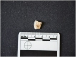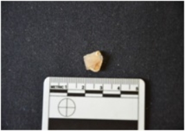 | Description / विवरण | Fragment of utilized flake has flake scars, striking platform, bulb on ventral side and use-wear marks on working edge. |