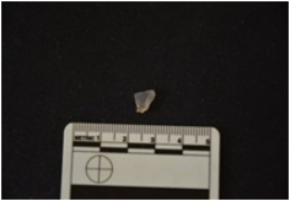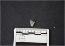 | Description / विवरण | A Chalcedony utilized flake has flake scars and use-wear marks on working edge. |