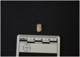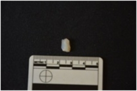 | Description / विवरण | Chalcedony blade fragment has two ridges on dorsal side, broken from both ends, use-wear marks on cutting edges and trapezoidal cross-section. |