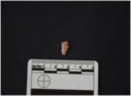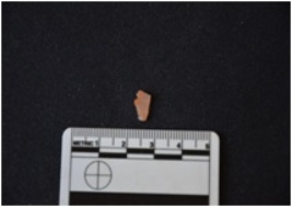 | Description / विवरण | Fragment of chalcedony notched blade has two ridges on dorsal side, striking platform, diffused bulb on ventral side, notched on one edge, use-wear marks on cutting edge and broken from distal end. |