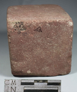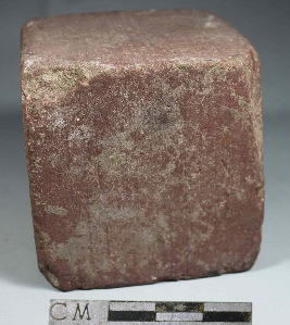 | Description / विवरण | It is a stone weight with cube shape. It is of red colour and has rough surface. |