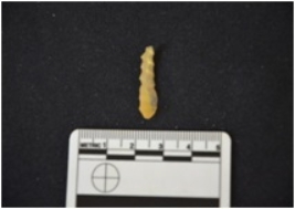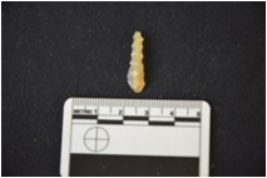 | Description / विवरण | Chalcedony backed blade fragment has two ridges on dorsal side, broken from both ends, backing along at one edge, trapezoidal cross-section, retouches and use-wear marks on other edge. |