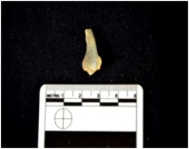 | Description / विवरण | Flake struck on chert, use wear marks on both edges, bulb of percussion visible |