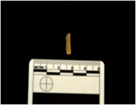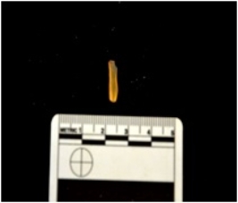 | Description / विवरण | Blade made on chalcedony, use wear marks along both edges,bulb of percussion visible |