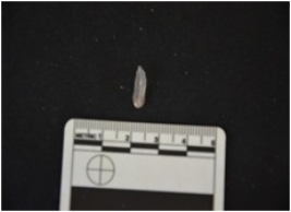 | Description / विवरण | Blade made on chalcedony, use wear marks along both edges,bulb of percussion visible |