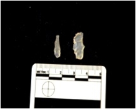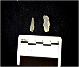 | Description / विवरण | Flakes struck on chalcedony, use wear marks along both edges |