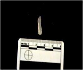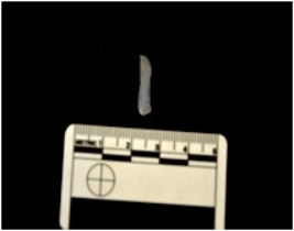 | Description / विवरण | Blade made on chalcedony, use wear marks along both edges,bulb of percussion visible |