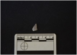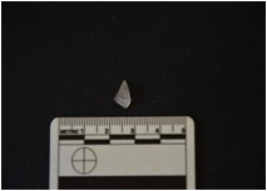 | Description / विवरण | Chalcedony utilized flake has ridges on surface and use-wear marks on working edge. |