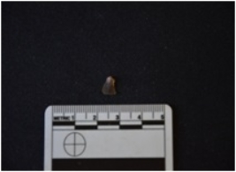 | Description / विवरण | Chalcedony blade fragment has a midridge on dorsal side, striking platform, diffused bulb on ventral side broken from distal end and use-wear marks on cutting edges. |
