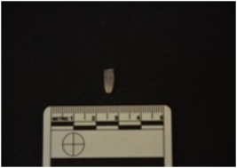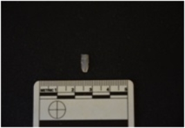 | Description / विवरण | Fragment of chalcedony blade has a midridge on dorsal side, striking platform bulb on ventral side, broken from distal end, use-wear marks on cutting edges and triangular cross-section. |