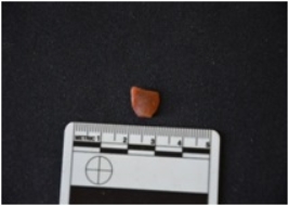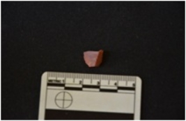 | Description / विवरण | Fragment of chert blade has striking platform, bulb on ventral side, broken from distal end and use-wear marks on cutting edge. |