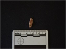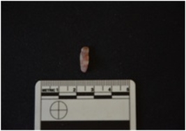 | Description / विवरण | Chert blade has a ridge on dorsal side, striking platform, bulb on ventral side and use-wear marks on cutting edge. |