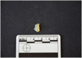 | Description / विवरण | Blade Fragment of chalcedony has two ridges on dorsal side, broken from proximal end, use-wear marks on cutting edges and triangular cross-section. |