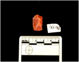 | Description / विवरण | Flake struck on chert, use wear marks seen along both edges |