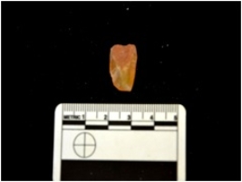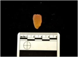 | Description / विवरण | Flake made on chert, use wear marks visible |