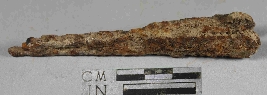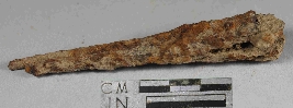| Description / विवरण | Entirely rusted nail with broken top and long body. |
