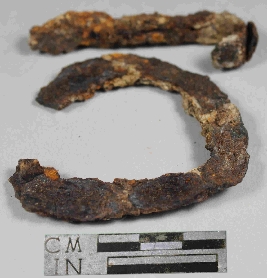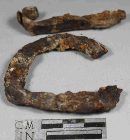 | Description / विवरण | Entirely rusted horse shoe nail with a broken side and rough surface. |