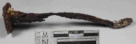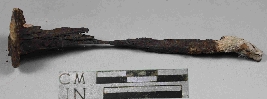 | Description / विवरण | Entirely rusted nail with flat top and uneven body and rough surface. |