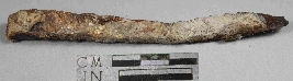 | Description / विवरण | Entirely rusted nail with broken top and rough surface. |