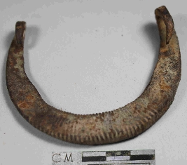 | Description / विवरण | Entirely rusted horse shoe nail with semi circular shape and rough surface. |