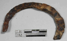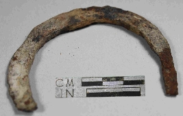 | Description / विवरण | Entirely rusted horse shoe nail with semi circular shape and rough surface. |