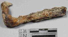 | Description / विवरण | Entirely rusted hook with L shape and rough surface. |