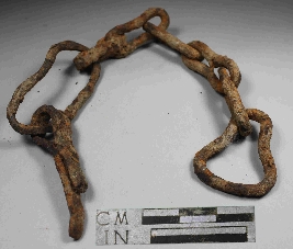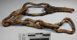 | Description / विवरण | Incrusted fragment of a chain showing a serial assembly of connected links. |