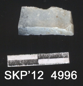 | Description / विवरण | This is a chert blade with broken ends, with triangular cross section. White in color with transparent brown patch at the broader end, smooth flaked surface, Rectangular. |