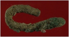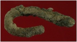 | Description / विवरण | Trench XAT 9, Qdt 3, layer 2, depth 180 cm It is a hook made of copper. One side is bent inward. Patina is present. |