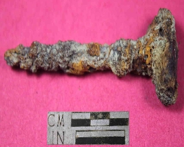 | Description / विवरण | T like shape of iron nail, one end pointed of rough surface. |