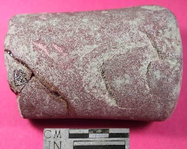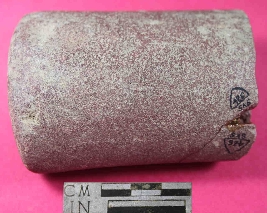 | Description / विवरण | It has a thick rounded end used for crushing substances in a mortar by hitting or rubbing them. It is chipped from one end and is of red in colour. |