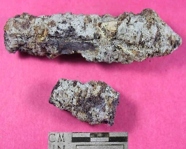 | Description / विवरण | Entirely incrusted fragment of a nail broken from top having conical end with rough surface. |